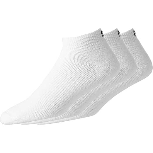 採用棉質以及滌綸、錦綸、氨綸等功能型面料。 52% Polyester 41%Cotton 5%Rayon 1%Rubber 1%Spandex 舒適接縫 - 舒適的接縫鞋頭提供平滑舒適的貼合度。 腳跟強化 - FootJoy 透過雙層鞋跟區域,在已知的高磨損區域提供支撐和緩衝,強化襪子的鞋跟。 緩衝鞋底 - ComfortSof 提供柔軟緩衝的鞋底,每一步都更加舒適。 三件組 - 包括三雙襪子。 尺寸 - 適合男鞋尺寸 US7-9 Asian 25-27cm Made in China