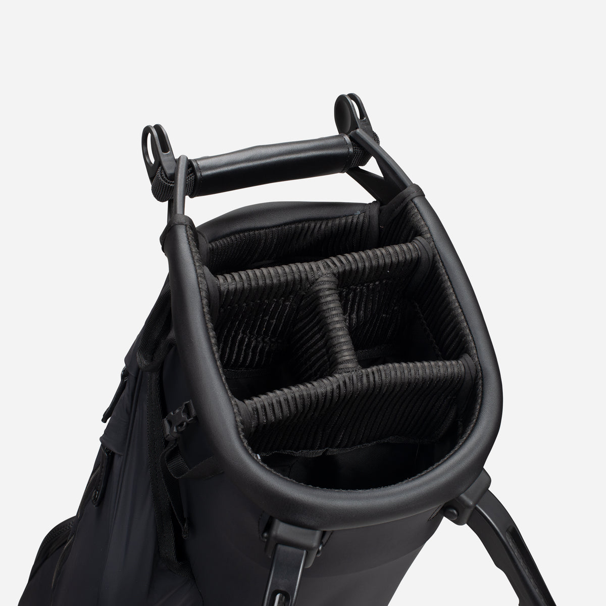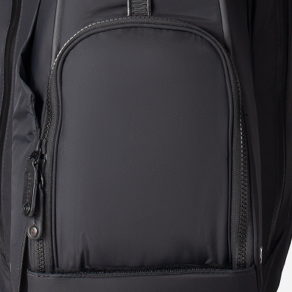 特點 專利旋轉支架系統 | 寬大低調的底座,確保最大穩定性 內建底座隔層 | 支架完全活動時,減少球桿卡住 球車帶通道 含球車帶套 碳纖維支架 | 最大強度重量比 含背帶 | EQ2 雙背帶 + 加厚單背帶 磁性測距儀口袋 | 內建隔層和天鵝絨襯裡 天鵝絨襯裡個人物品口袋 | 內建鑰匙圈 大容量衣物隔層,內建網袋 冷藏瓶內襯水壺套 | 附可擴展磁性扣 球袋 |內部收納 毛巾環 雨傘架 同材質雨罩 筆筒 一體式背板 外部口袋總數:7 內袋總數:3 重量 - 主體:4.3 磅 - 雙肩帶:0.50 磅 - 單肩帶:0.40 磅 - 雨罩:0.25 磅 - 推車帶套:0.10 磅 尺寸 13 英吋長 x 12 英吋寬 x 35 英吋高 FEATURES Patented Rotator Stand System | With wide, low-profile base for maximum stability Internal Base Divider | Reduces club jam when the legs are full activated Cart Strap Pass-Through Tunnel Cart Strap Sleeve Included Carbon Fiber Legs | Maximum strength to weight ratio Straps Included | EQ2 Double Strap + Padded Single Strap Magnetic Rangefinder Pocket | With internal divider & velour lining Velour-Lined Personals Pocket | With internal key-hook Large Garment Compartment With internal mesh pocket Cooler-Lined Bottle Sleeve | With expandable magnetic closure Ball Pocket | With internal organization Towel Loop Umbrella Holder Matching Body Material Rain Hood Pen Holder Integrated Back Panel Total Exterior Pockets: 7 Total Interior Pockets: 3 Weight - Body: 4.3 lbs - Double Strap: .50 lbs - Single Strap: .40 lbs - Rain Hood: .25 lbs - Cart Strap Sleeve: .10 lbs Dimensions 13”L x 12”W x 35”H